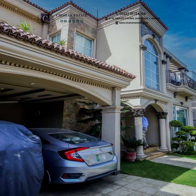 Top of the line bungalow in the heart of DHA Phase VIII. Spanish bungalow, 15 Marla Superb modern style self constructed bungalow, all imported fittings and fixtures, All marble/tiled, all teak and ash wood, spacious wash rooms, solid wooden doors and kitchen, near to commercial market 04 beds + 06 baths + 02 tv lounge + 2 servant quarters + 02 kitchen and DD. Superb interior, very decent interior and house is being offered at a very reasonable demand if we compare it with other brand new houses